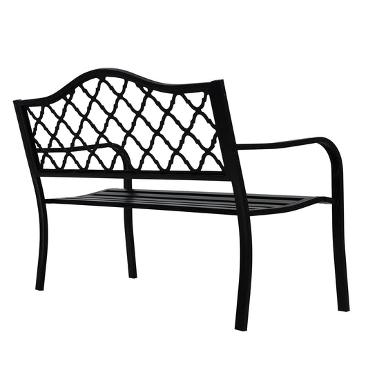 50" Metal Outdoor Garden Bench Diamond Pattern Black