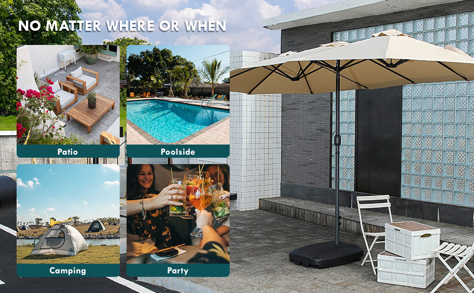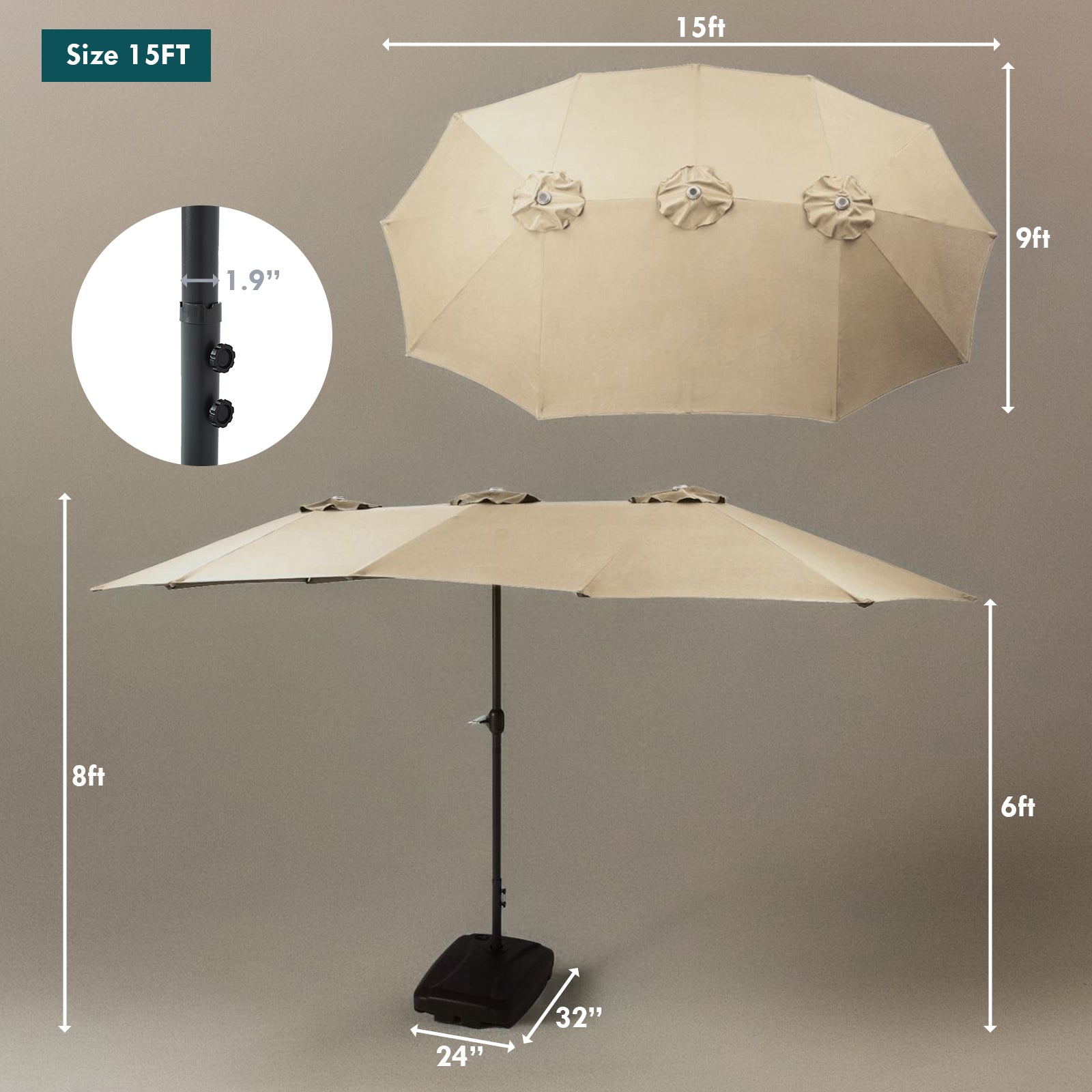 15FT Large Patio Umbrella Beige with Heavy Duty Rolling Base