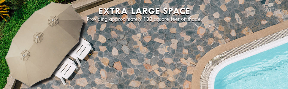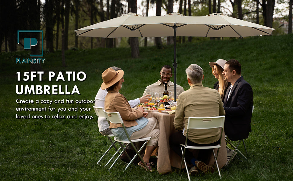 - Large Patio Umbrella: Experience superior sun protection with our 15ft umbrella, boasting a wider canopy for optimal shade. It measures 15 feet x 9 feet in diameter with a 8 feet height which is perfect for covering patios, lounges, or group seating.