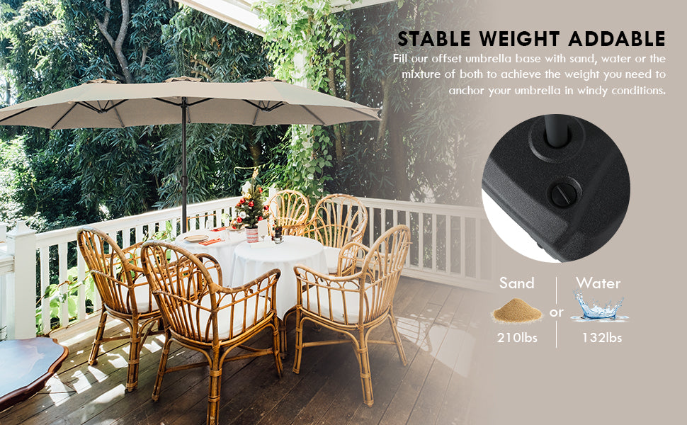 - Double-Sided Design: The umbrella features a double-sided design, allowing you to enjoy shade from both sides. It is also easy to open and close, thanks to the crank mechanism.