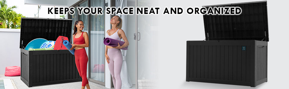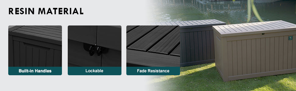 - Weather-resistant: Crafted from high-quality, water-resistant polypropylene resin, our deck box is designed to withstand the elements. Its durability ensures years of reliable use, providing a safe and dry space for your items, regardless of the weather conditions.