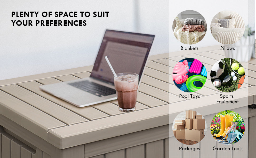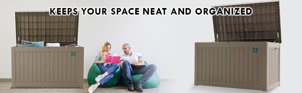 - Stylish and versatile: With its clean, modern design, our storage box is more than just practical - it’s stylish too. It complements any outdoor decor, making it a versatile choice for patios, decks, balconies, or even garages. It’s a functional and aesthetic addition to your space.