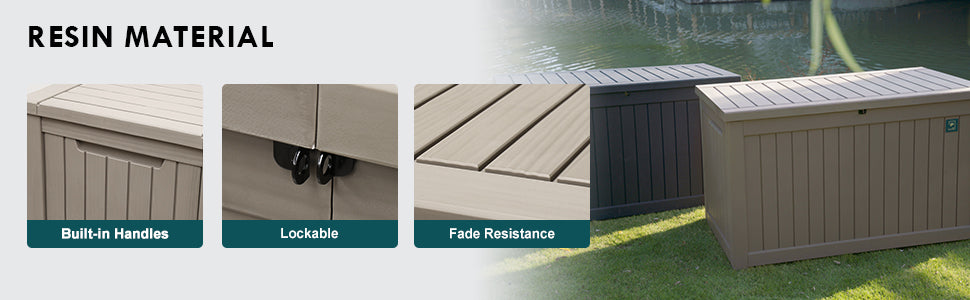 - Weather-resistant: Crafted from high-quality, water-resistant polypropylene resin, our deck box is designed to withstand the elements. Its durability ensures years of reliable use, providing a safe and dry space for your items, regardless of the weather conditions.