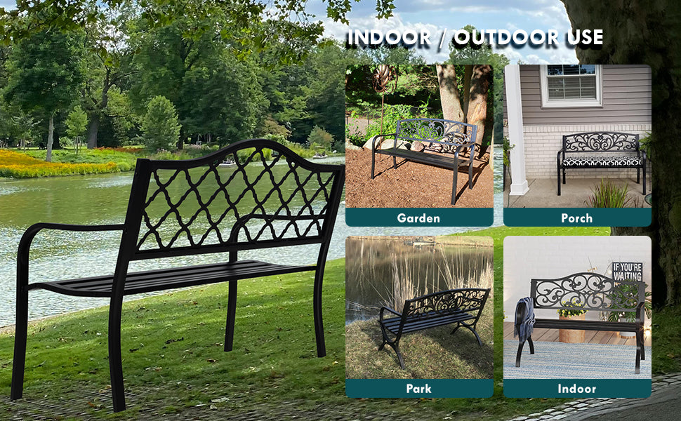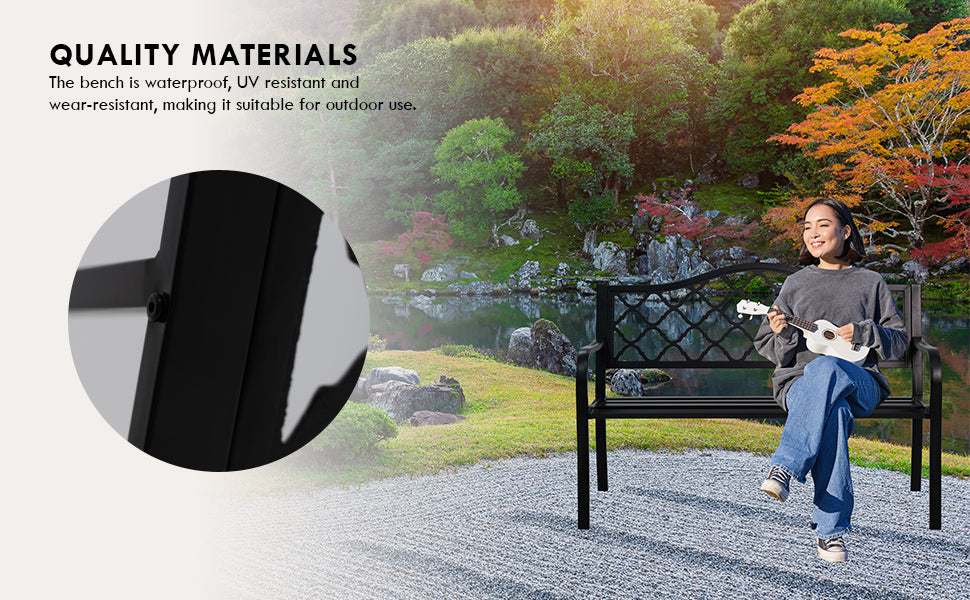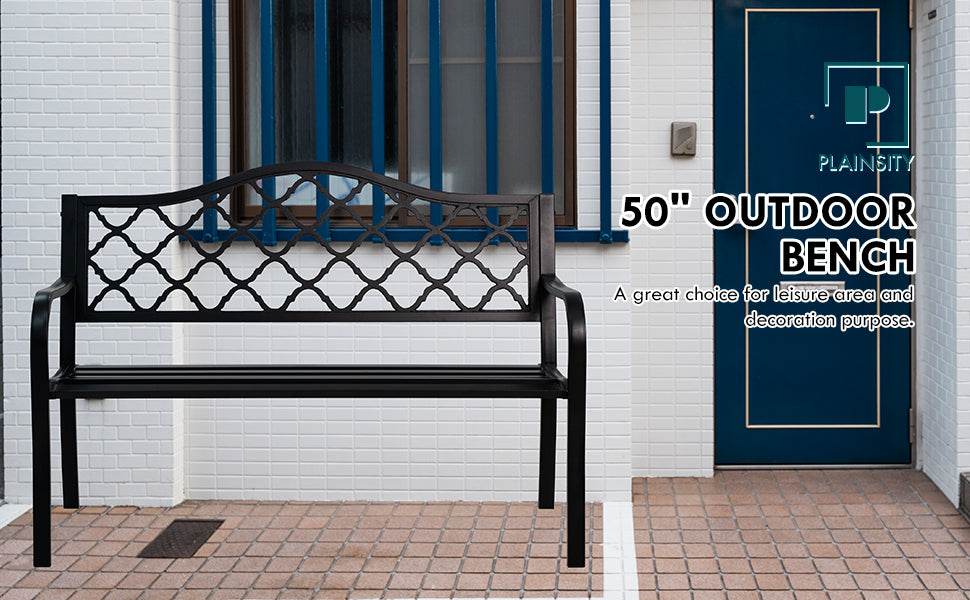 50" Metal Outdoor Garden Bench Diamond Pattern Black
