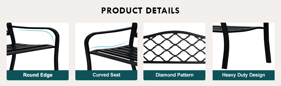 - Sturdy and Safe: Made of cast iron and metal frame, ensuring stability and durability for long-term use. The bench is all finished with round edges and smooth surface, providing you with safe relaxation.