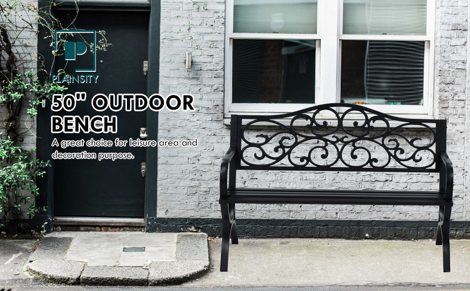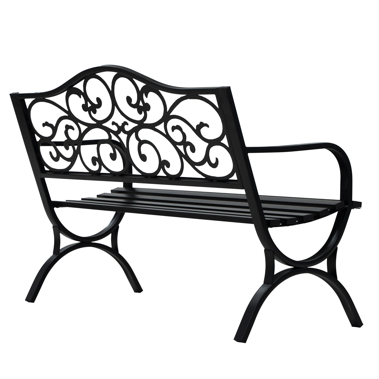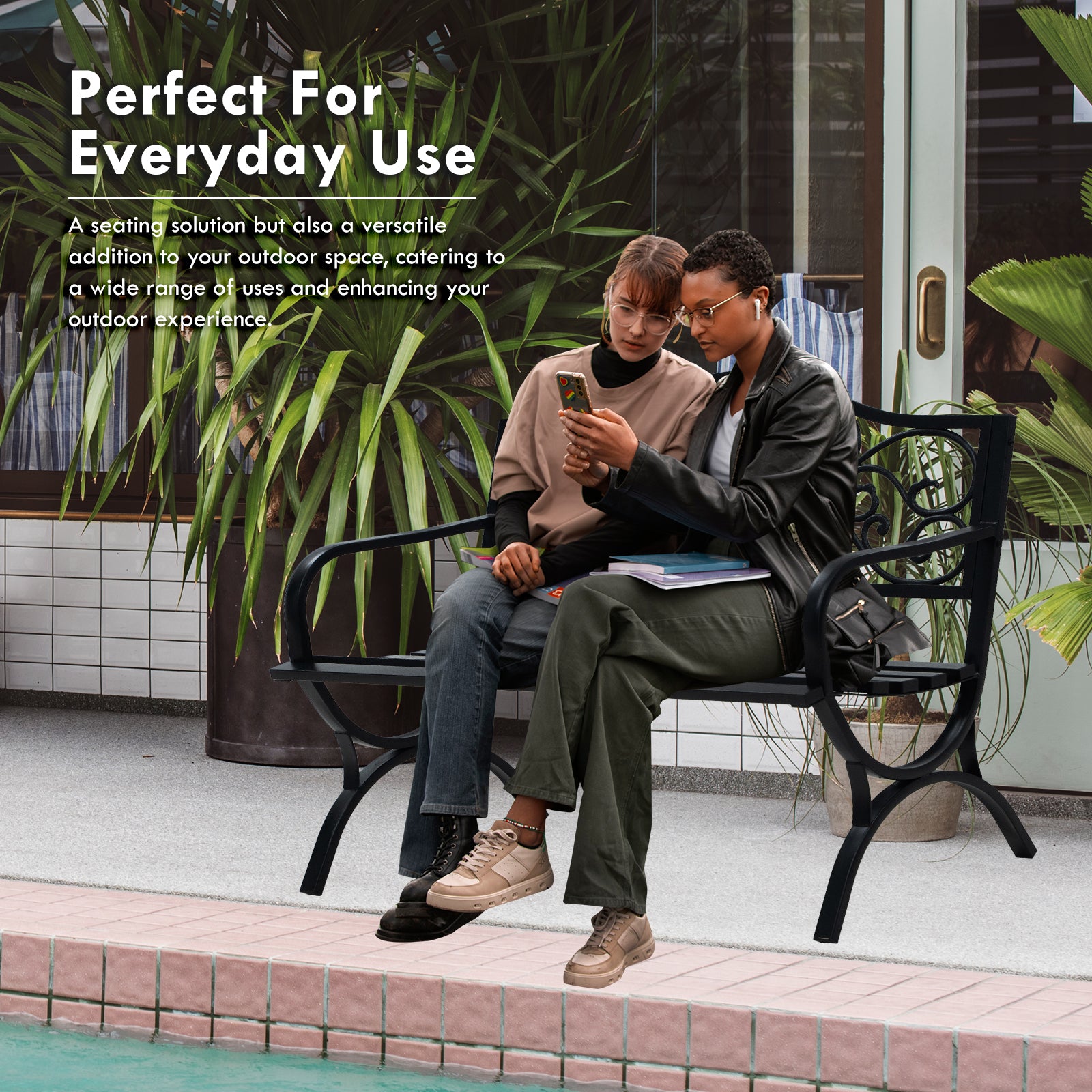 50" Metal Outdoor Garden Bench Floral Pattern Black