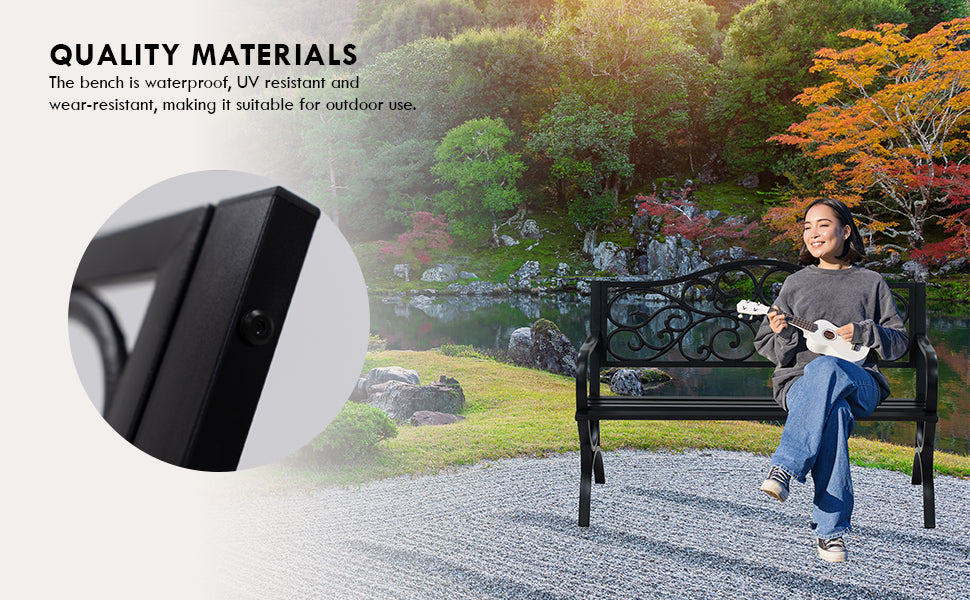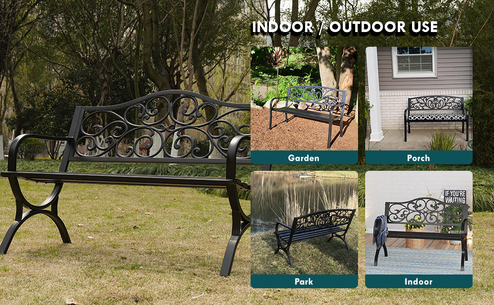 - Sturdy and Safe: Made of cast iron and metal frame, ensuring stability and durability for long-term use. The bench is all finished with round edges and smooth surface, providing you with safe relaxation.