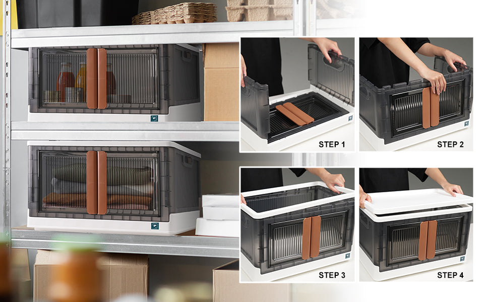 - Collapsible / Easy Assembly: Experience the convenience of our collapsible, install-free storage bins. Assembled in just 10 seconds, they’re lightweight yet sturdy, and feature side handles for easy handling. Perfect for indoor and outdoor organization.